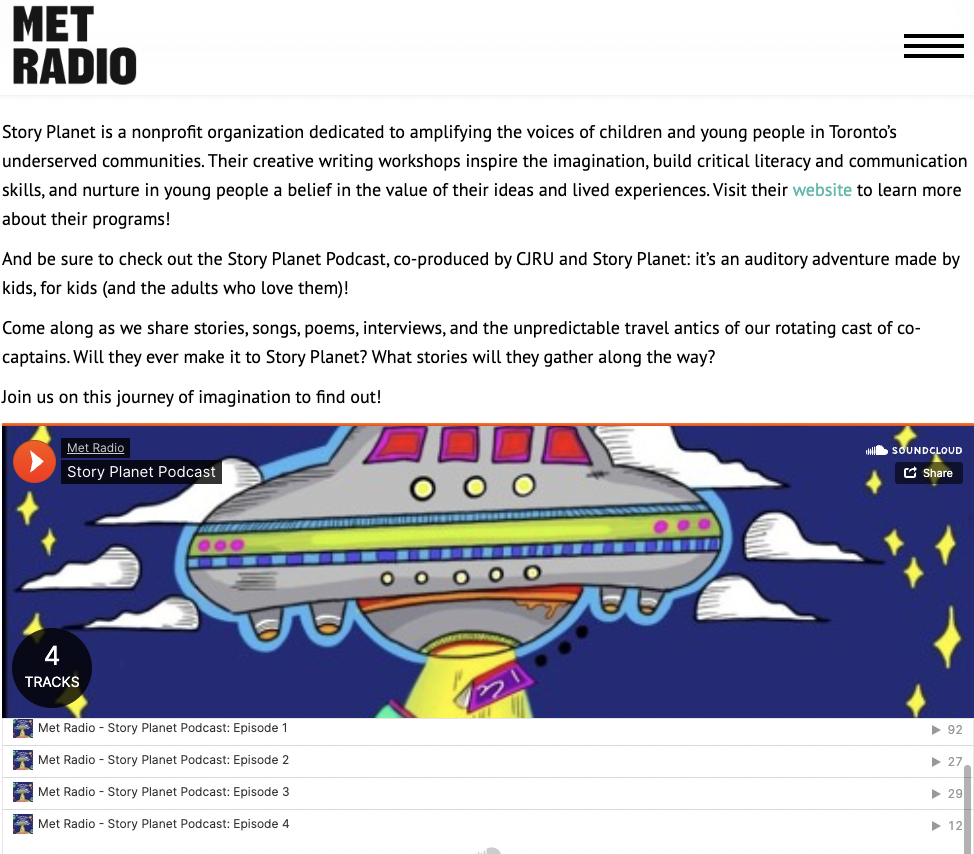 Profile of Story Planet on MetRadio